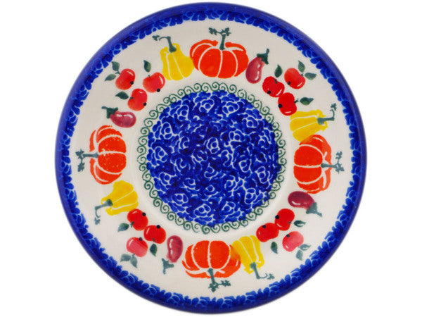 This Polish Pottery Saucer is handmade and handpainted by the Ceramika Bona factory in Boleslawiec, Poland. Manufacturer item number H1737P. It is ¾" high and measures 6½" by 6½". The capacity of this Saucer is 4.36 oz (brimful) and it weighs 0.6 lbs. It is part of the Fresh Vegetable Garden Collection.