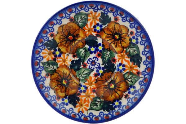 This Polish Pottery Saucer is handmade and handpainted by the Ceramika Bona factory in Boleslawiec, Poland. Manufacturer item number H5719R. It is ¾" high and measures 5¾" by 5¾". The weight of this Saucer is 0.5 lbs. It is part of the Mauve Poppies Collection.