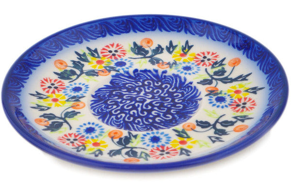 This Polish Pottery Saucer is handmade and handpainted by the Ceramika Bona factory in Boleslawiec, Poland. Manufacturer item number H1981R. It is ¾" high and measures 5¾" by 5¾". The weight of this Saucer is 0.5 lbs. It is part of the Pastel Spring Wreath Collection.
