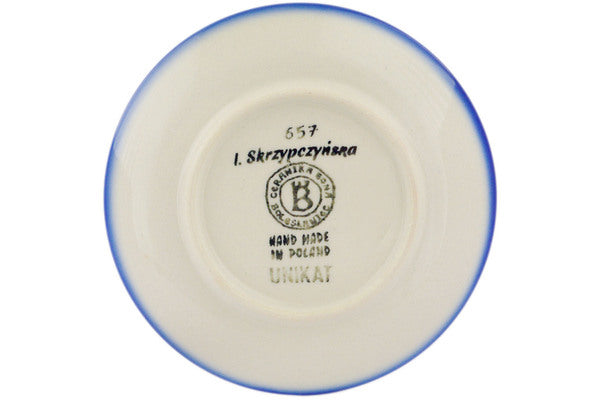 This is a Polish pottery Unikat (Signature) Saucer, which means that it has been hand painted with both sponges and brushes and it is signed by the artist who painted it. Unikat pieces are the most intricate works of art. Larger Unikat items take hours of very careful work to finish.