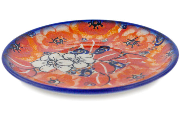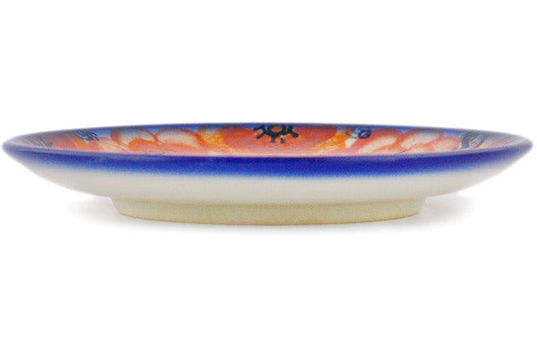 This Polish Pottery Saucer is handmade and handpainted by the Ceramika Bona factory in Boleslawiec, Poland. Manufacturer item number H8802Q. It is ¾" high and measures 5¾" by 5¾". The weight of this Saucer is 0.5 lbs. It is part of the Poppy Passion Collection.