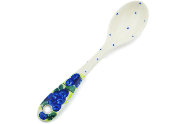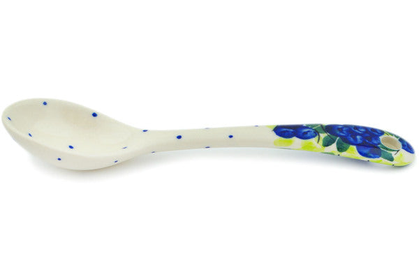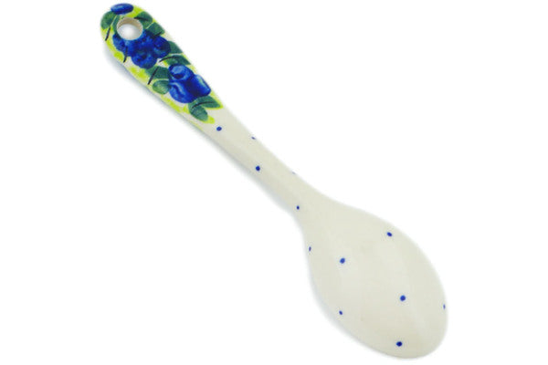 This Polish Pottery Spoon is handmade and handpainted by the Dalia factory in Boleslawiec, Poland. Manufacturer item number H7112N. It is ½" high and measures 6" by 1¼". The weight of this Spoon is 0.1 lbs. It is part of the Blueberries Season Collection.