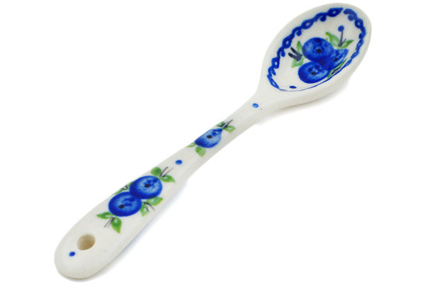 This Polish Pottery Spoon is handmade and handpainted by the Ceramika Bona factory in Boleslawiec, Poland. Manufacturer item number H0858P. It is ¾" high and measures 6" by 1½". The weight of this Spoon is 0.0 lbs. It is part of the Blueberry Dreams Collection.