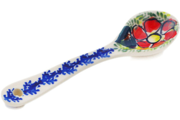 This Polish Pottery Spoon is handmade and handpainted by the Ceramika Bona factory in Boleslawiec, Poland. Manufacturer item number H8762Q. It is ¾" high and measures 5¾" by 1½". The weight of this Spoon is 0.1 lbs. It is part of the Bold Poppies Collection.