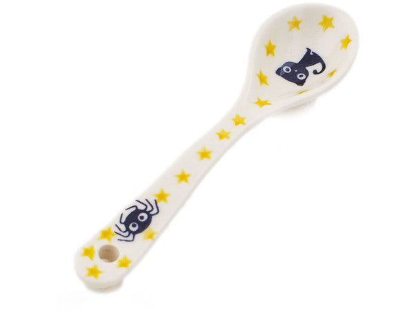This Polish Pottery Spoon is handmade and handpainted by the Ceramika Bona factory in Boleslawiec, Poland. Manufacturer item number H8763Q. It is ¾" high and measures 5¾" by 1½". The weight of this Spoon is 0.1 lbs. It is part of the Halloween Spooky Vibe Collection.