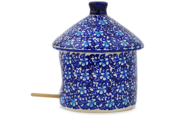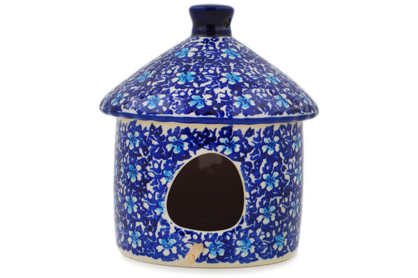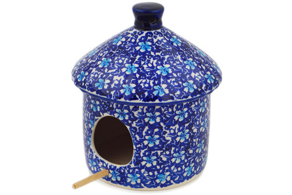 This Polish Pottery Birdhouse is handmade and handpainted by the Manufaktura factory in Boleslawiec, Poland. Manufacturer item number H7318P. It is 6½" high and measures 6¾" by 5¾". The weight of this Birdhouse is 1.9 lbs. It is part of the Flowers On The Lake Collection.
