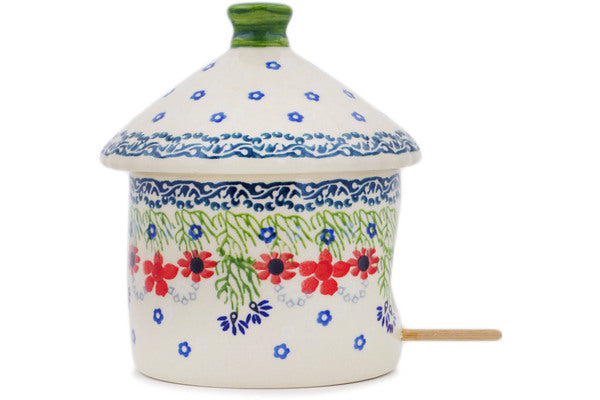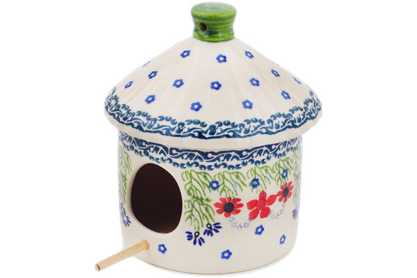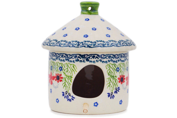 This Polish Pottery Birdhouse is handmade and handpainted by the Manufaktura factory in Boleslawiec, Poland. Manufacturer item number H7478P. It is 6½" high and measures 6¾" by 5¾". The weight of this Birdhouse is 1.9 lbs. It is part of the Red Blossom Collection.