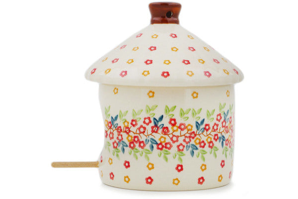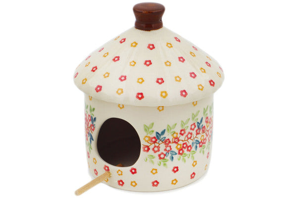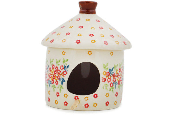 This Polish Pottery Birdhouse is handmade and handpainted by the Manufaktura factory in Boleslawiec, Poland. Manufacturer item number H8342P. It is 6½" high and measures 6¾" by 5¾". The weight of this Birdhouse is 1.9 lbs. It is part of the Tropical Bloomscape Collection.