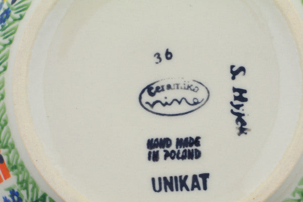 This is a Polish pottery Unikat (Signature) Bowl, which means that it has been hand painted with both sponges and brushes and it is signed by the artist who painted it. Unikat pieces are the most intricate works of art. Larger Unikat items take hours of very careful work to finish.