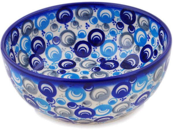 This Polish Pottery Bowl is handmade and handpainted by the Ceramika Bona factory in Boleslawiec, Poland. Manufacturer item number H3127Q. It is 2¾" high and measures 7" by 7". The capacity of this Bowl is 33.98 oz (brimful) and it weighs 1.4 lbs. It is part of the Blue Peacock Eye Collection.