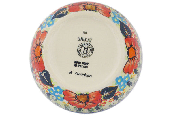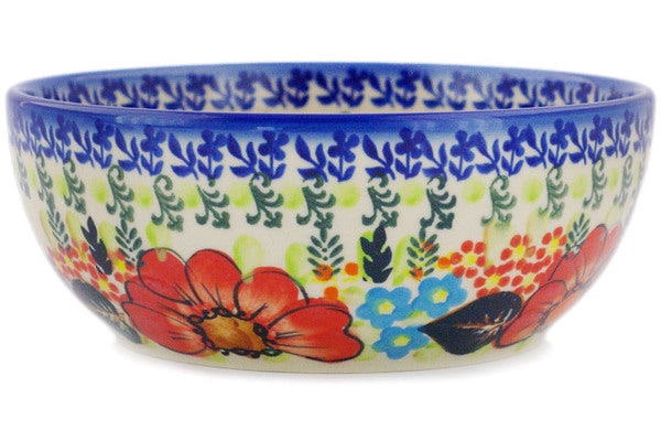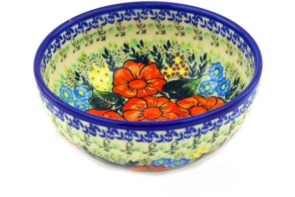 This Polish Pottery Bowl is handmade and handpainted by the Ceramika Bona factory in Boleslawiec, Poland. Manufacturer item number H6780F. It is 2¾" high and measures 7" by 7". The capacity of this Bowl is 33.98 oz (brimful) and it weighs 1.4 lbs. It is part of the Bold Red Poppies Collection.