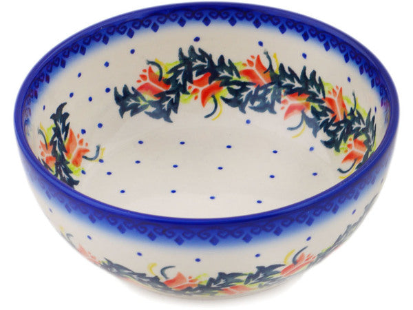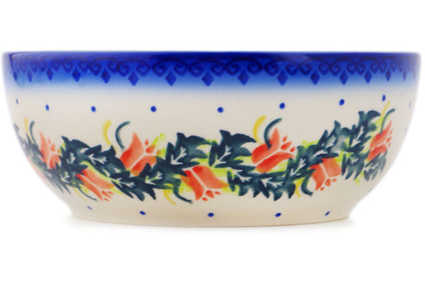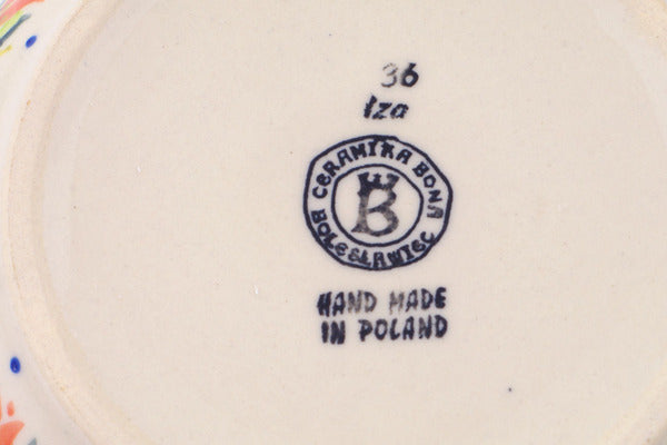 This Polish Pottery Bowl is handmade and handpainted by the Ceramika Bona factory in Boleslawiec, Poland. Manufacturer item number H8818Q. It is 2¾" high and measures 7" by 7". The capacity of this Bowl is 33.98 oz (brimful) and it weighs 1.4 lbs. It is part of the California Poppies Collection.