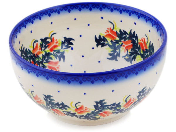 This Polish Pottery Bowl is handmade and handpainted by the Ceramika Bona factory in Boleslawiec, Poland. Manufacturer item number H8814Q. It is 3¾" high and measures 7½" by 7½". The capacity of this Bowl is 50.72 oz (brimful) and it weighs 2.0 lbs. It is part of the California Poppies Collection.