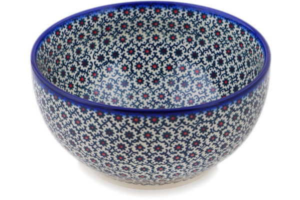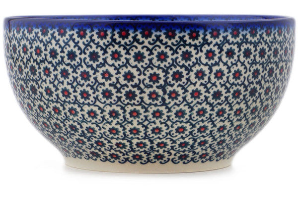 This Polish Pottery Bowl is handmade and handpainted by the Ceramika Bona factory in Boleslawiec, Poland. Manufacturer item number H9743Q. It is 3¾" high and measures 7½" by 7½". The capacity of this Bowl is 50.72 oz (brimful) and it weighs 2.0 lbs. It is part of the Field Of Black Daisies Collection.