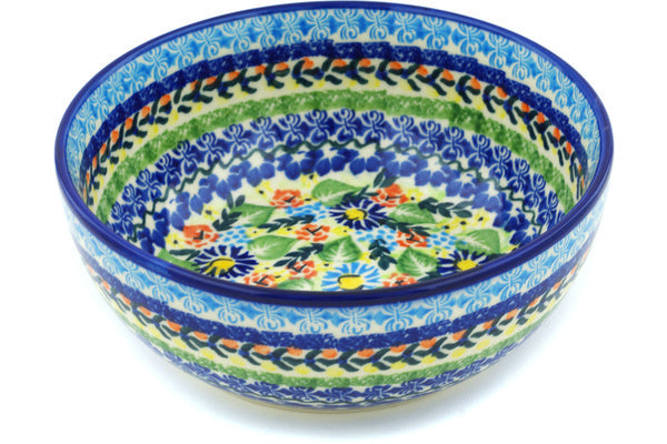This Polish Pottery Bowl is handmade and handpainted by the Ceramika Bona factory in Boleslawiec, Poland. Manufacturer item number H3530H. It is 2¾" high and measures 7" by 7". The capacity of this Bowl is 33.98 oz (brimful) and it weighs 1.4 lbs. It is part of the Flor-De-Lis Collection.