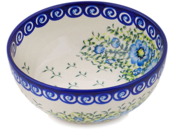 This Polish Pottery Bowl is handmade and handpainted by the Ceramika Bona factory in Boleslawiec, Poland. Manufacturer item number H2058R. It is 2¾" high and measures 7" by 7". The capacity of this Bowl is 33.98 oz (brimful) and it weighs 1.4 lbs. It is part of the Gorgeous Morning Glory Collection.