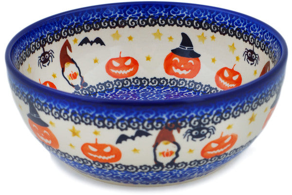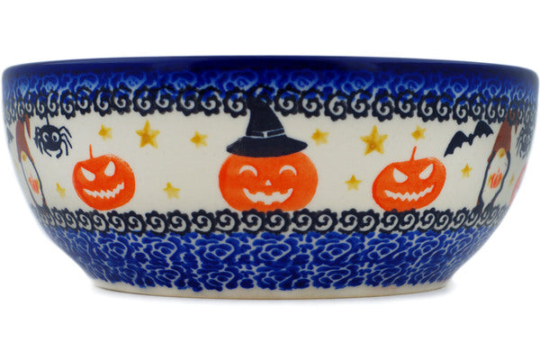This Polish Pottery Bowl is handmade and handpainted by the Ceramika Nina factory in Boleslawiec, Poland. Manufacturer item number H1372P. It is 2¾" high and measures 7" by 7". The capacity of this Bowl is 33.98 oz (brimful) and it weighs 1.4 lbs. It is part of the Harvest Haunt Collection.