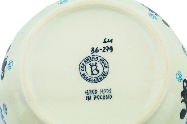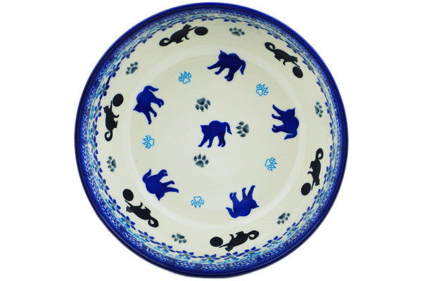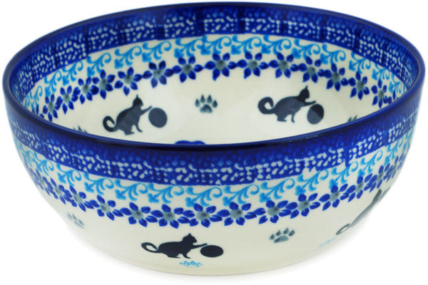 This Polish Pottery Bowl is handmade and handpainted by the Ceramika Bona factory in Boleslawiec, Poland. Manufacturer item number H8747M. It is 2¾" high and measures 7" by 7". The capacity of this Bowl is 33.98 oz (brimful) and it weighs 1.4 lbs. It is part of the Kitty Paw Play Time Collection.