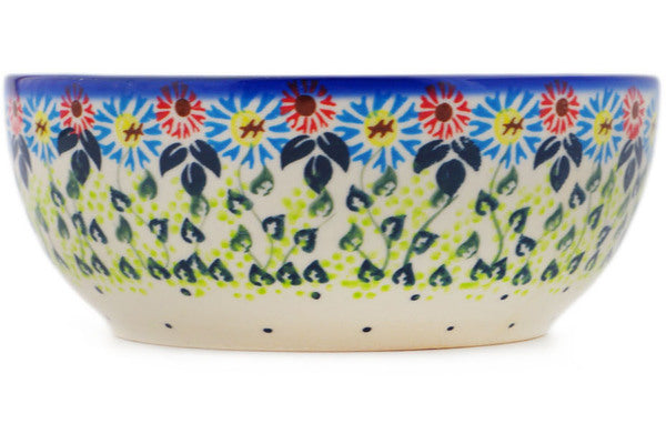 This Polish Pottery Bowl is handmade and handpainted by the Ceramika Bona factory in Boleslawiec, Poland. Manufacturer item number H2054R. It is 2¾" high and measures 7" by 7". The capacity of this Bowl is 33.98 oz (brimful) and it weighs 1.4 lbs. It is part of the Long-stemmed Beauties Collection.