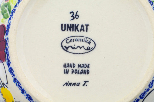 This is a Polish pottery Unikat (Signature) Bowl, which means that it has been hand painted with both sponges and brushes and it is signed by the artist who painted it. Unikat pieces are the most intricate works of art. Larger Unikat items take hours of very careful work to finish.