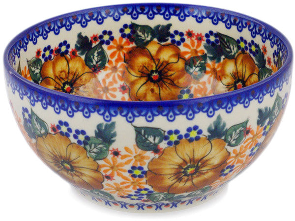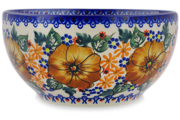 This Polish Pottery Bowl is handmade and handpainted by the Ceramika Bona factory in Boleslawiec, Poland. Manufacturer item number H5706R. It is 3¾" high and measures 7½" by 7½". The capacity of this Bowl is 50.72 oz (brimful) and it weighs 2.0 lbs. It is part of the Mauve Poppies Collection.