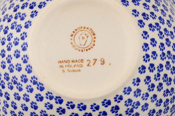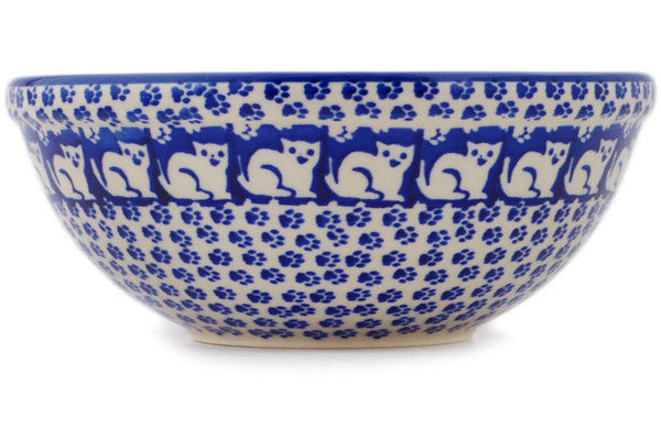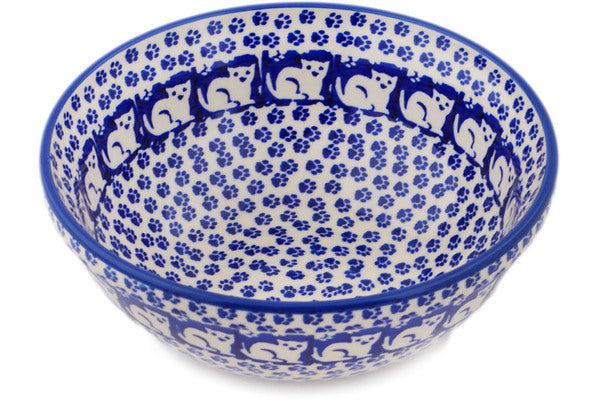 This Polish Pottery Bowl is handmade and handpainted by the Manufaktura factory in Boleslawiec, Poland. Manufacturer item number H7261P. It is 2¾" high and measures 6¾" by 6¾". The capacity of this Bowl is 24.04 oz (brimful) and it weighs 1.3 lbs. It is part of the Meow Collection.