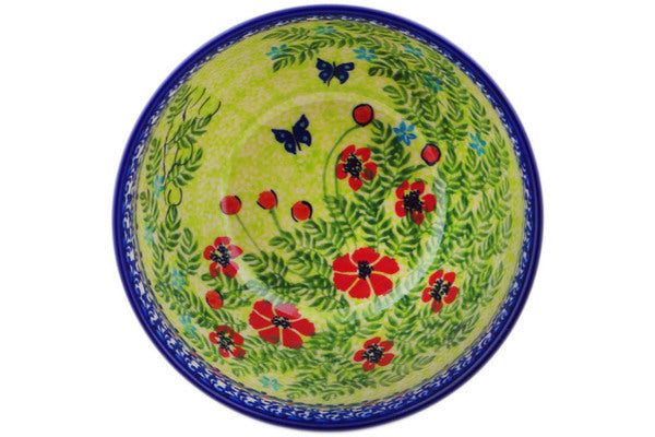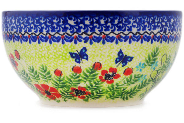This Polish Pottery Bowl is handmade and handpainted by the Ceramika Bona factory in Boleslawiec, Poland. Manufacturer item number H8729Q. It is 3¾" high and measures 7½" by 7½". The capacity of this Bowl is 50.72 oz (brimful) and it weighs 2.0 lbs. It is part of the Metamorphosis Collection.