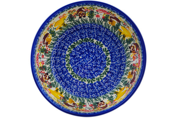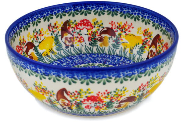 This Polish Pottery Bowl is handmade and handpainted by the Ceramika Nina factory in Boleslawiec, Poland. Manufacturer item number H1373P. It is 2¾" high and measures 7" by 7". The capacity of this Bowl is 33.98 oz (brimful) and it weighs 1.4 lbs. It is part of the Mushroom Love Collection.