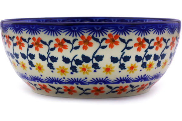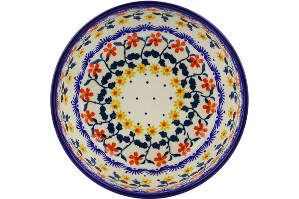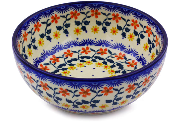 This Polish Pottery Bowl is handmade and handpainted by the Ceramika Bona factory in Boleslawiec, Poland. Manufacturer item number H8955I. It is 2¾" high and measures 7" by 7". The capacity of this Bowl is 33.98 oz (brimful) and it weighs 1.4 lbs. It is part of the Red Sunflower Collection.