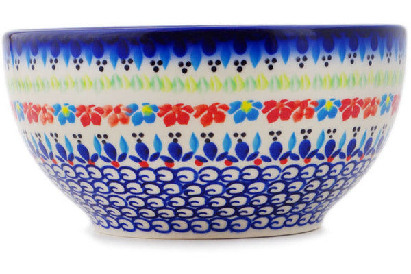 This Polish Pottery Bowl is handmade and handpainted by the Ceramika Bona factory in Boleslawiec, Poland. Manufacturer item number H3052Q. It is 3¾" high and measures 7½" by 7½". The capacity of this Bowl is 50.72 oz (brimful) and it weighs 2.0 lbs. It is part of the Spring Flowers Collection.