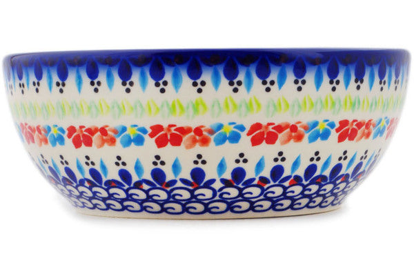 This Polish Pottery Bowl is handmade and handpainted by the Ceramika Bona factory in Boleslawiec, Poland. Manufacturer item number H3053Q. It is 2¾" high and measures 7" by 7". The capacity of this Bowl is 33.98 oz (brimful) and it weighs 1.4 lbs. It is part of the Spring Flowers Collection.