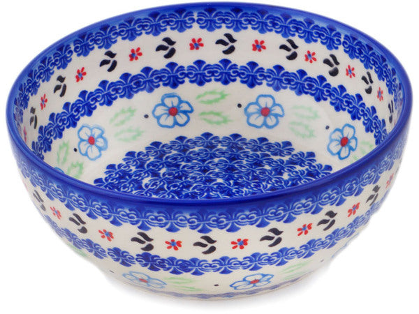 This Polish Pottery Bowl is handmade and handpainted by the Ceramika Bona factory in Boleslawiec, Poland. Manufacturer item number H1944R. It is 2¾" high and measures 7" by 7". The capacity of this Bowl is 33.98 oz (brimful) and it weighs 1.4 lbs. It is part of the Sweet Day Collection.
