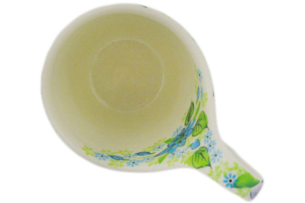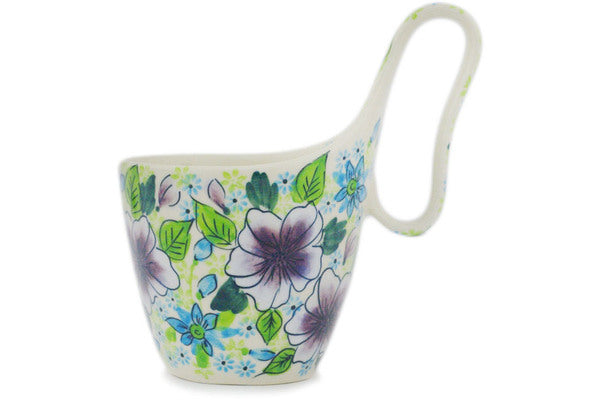 This Polish Pottery Bowl with Loop-Handle is handmade and handpainted by the Dalia factory in Boleslawiec, Poland. Manufacturer item number H2342R. It is 6½" high and measures 5¼" by 4¼". The capacity of this Bowl with Loop-Handle is 13.80 oz (brimful) and it weighs 1.0 lbs. It is part of the Purple Dream Collection.