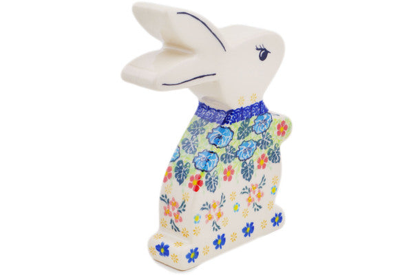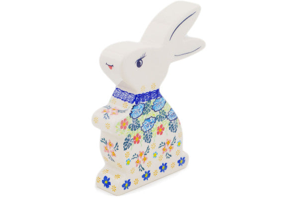 This Polish Pottery Bunny Figurine is handmade and handpainted by the Dalia factory in Boleslawiec, Poland. Manufacturer item number H1425R. It is 7½" high and measures 5¼" by 1½". The weight of this Bunny Figurine is 1.0 lbs. It is part of the Monstera Blooms Collection.