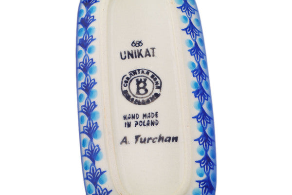 This is a Polish pottery Unikat (Signature) Butter Dish, which means that it has been hand painted with both sponges and brushes and it is signed by the artist who painted it. Unikat pieces are the most intricate works of art. Larger Unikat items take hours of very careful work to finish.
