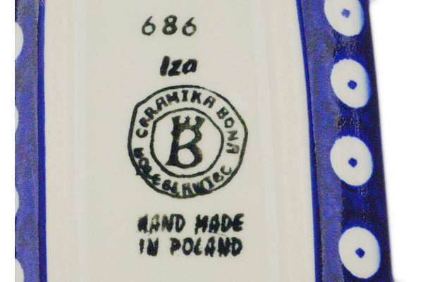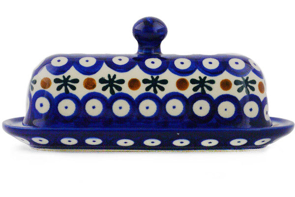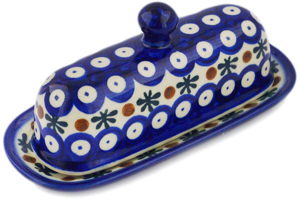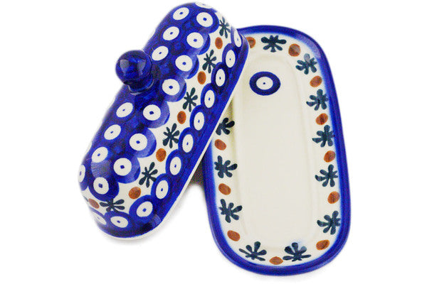 This Polish Pottery Butter Dish is handmade and handpainted by the Ceramika Bona factory in Boleslawiec, Poland. Manufacturer item number H2870R. It is 3" high and measures 7¼" by 3½". The weight of this Butter Dish is 0.8 lbs. It is part of the Mosquito Collection.