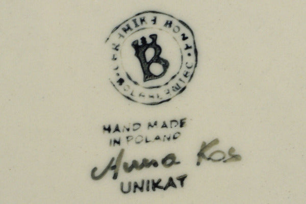 This is a Polish pottery Unikat (Signature) Butter Dish, which means that it has been hand painted with both sponges and brushes and it is signed by the artist who painted it. Unikat pieces are the most intricate works of art. Larger Unikat items take hours of very careful work to finish.