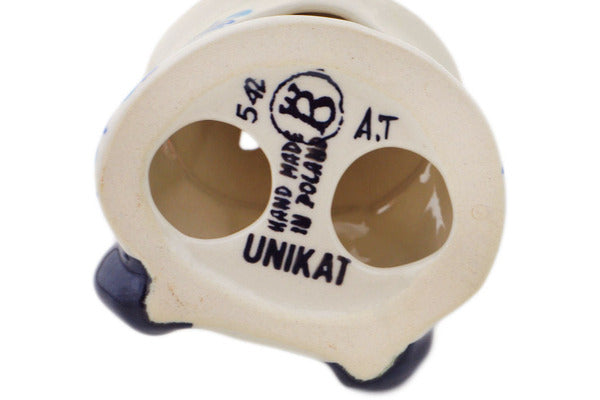 This is a Polish pottery Unikat (Signature) Candle Holder, which means that it has been hand painted with both sponges and brushes and it is signed by the artist who painted it. Unikat pieces are the most intricate works of art. Larger Unikat items take hours of very careful work to finish.