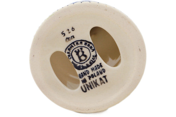 This is a Polish pottery Unikat (Signature) Candle Holder, which means that it has been hand painted with both sponges and brushes and it is signed by the artist who painted it. Unikat pieces are the most intricate works of art. Larger Unikat items take hours of very careful work to finish.