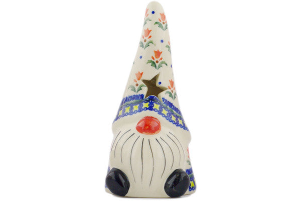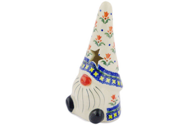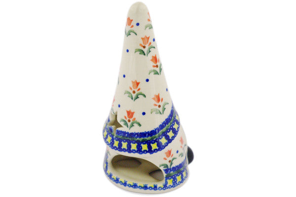 This Polish Pottery Candle Holder is handmade and handpainted by the Ceramika Bona factory in Boleslawiec, Poland. Manufacturer item number H5466R. It is 7" high and measures 3¼" by 3". The weight of this Candle Holder is 0.6 lbs. It is part of the Cocentric Tulips Collection.