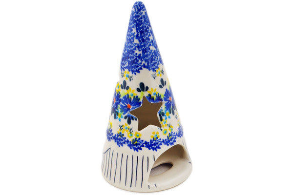 This Polish Pottery Candle Holder is handmade and handpainted by the Ceramika Bona factory in Boleslawiec, Poland. Manufacturer item number H9690Q. It is 6½" high and measures 3½" by 3½". The weight of this Candle Holder is 0.8 lbs. It is part of the Cornflower Meadow Collection.
