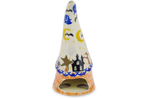 This Polish Pottery Candle Holder is handmade and handpainted by the Ceramika Bona factory in Boleslawiec, Poland. Manufacturer item number H5938R. It is 7" high and measures 3¼" by 3". The weight of this Candle Holder is 0.6 lbs. It is part of the Halloween Spooky Vibe Collection.
