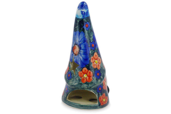 This Polish Pottery Candle Holder is handmade and handpainted by the Ceramika Bona factory in Boleslawiec, Poland. Manufacturer item number H0091R. It is 7" high and measures 3¼" by 3". The weight of this Candle Holder is 0.6 lbs. It is part of the Midnight Garden Collection.