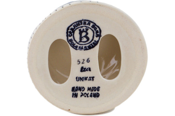 This is a Polish pottery Unikat (Signature) Candle Holder, which means that it has been hand painted with both sponges and brushes and it is signed by the artist who painted it. Unikat pieces are the most intricate works of art. Larger Unikat items take hours of very careful work to finish.
