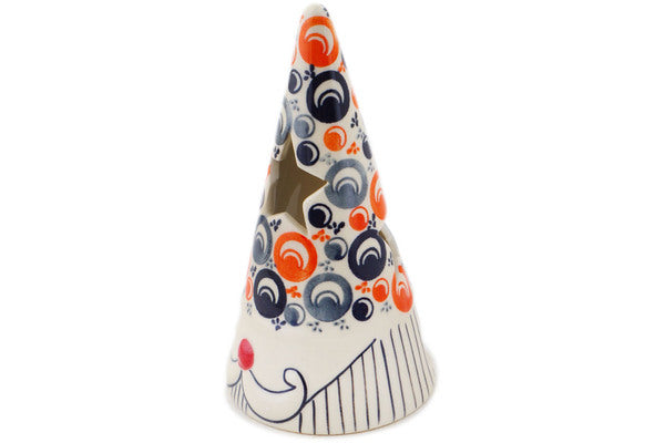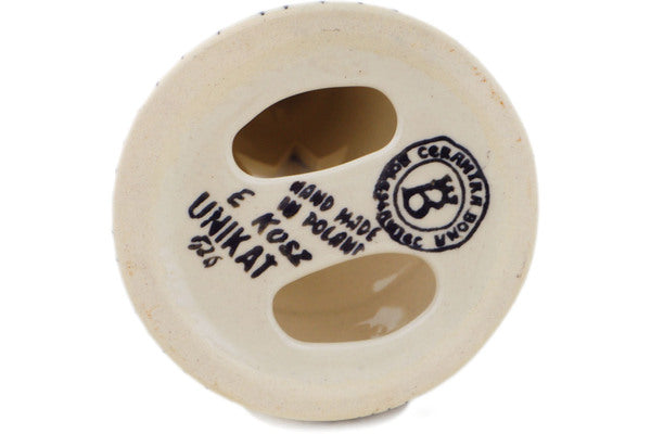 This Polish Pottery Candle Holder is handmade and handpainted by the Ceramika Bona factory in Boleslawiec, Poland. Manufacturer item number H7176Q. It is 6½" high and measures 3½" by 3½". The weight of this Candle Holder is 0.8 lbs. It is part of the Red Peacock Eye Collection.