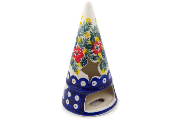 This Polish Pottery Candle Holder is handmade and handpainted by the Ceramika Bona factory in Boleslawiec, Poland. Manufacturer item number H1860P. It is 6½" high and measures 3½" by 3½". The weight of this Candle Holder is 0.8 lbs. It is part of the Tropical Peacock Collection.