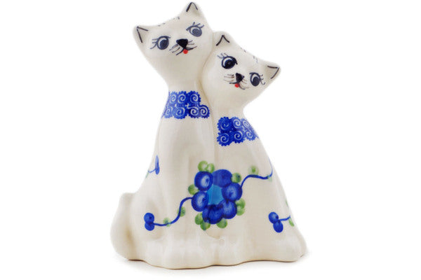 This Polish Pottery Cat Figurine is handmade and handpainted by the Ceramika Bona factory in Boleslawiec, Poland. Manufacturer item number H0252Q. It is 6¾" high and measures 5" by 2¼". The weight of this Cat Figurine is 0.8 lbs. It is part of the Blue Poppies Collection.