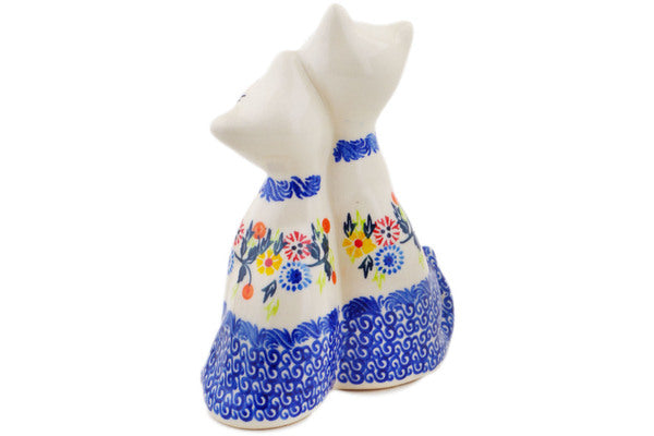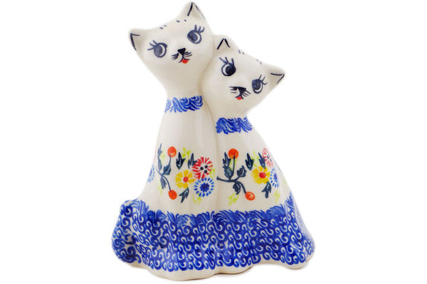 This Polish Pottery Cat Figurine is handmade and handpainted by the Ceramika Bona factory in Boleslawiec, Poland. Manufacturer item number H2071R. It is 6¾" high and measures 5" by 2¼". The weight of this Cat Figurine is 0.8 lbs. It is part of the Pastel Spring Wreath Collection.