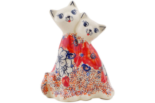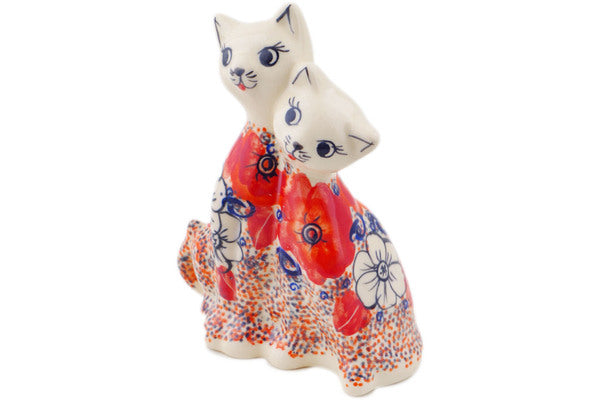 This Polish Pottery Cat Figurine is handmade and handpainted by the Ceramika Bona factory in Boleslawiec, Poland. Manufacturer item number H8173Q. It is 6¾" high and measures 5" by 2¼". The weight of this Cat Figurine is 0.8 lbs. It is part of the Poppy Passion Collection.