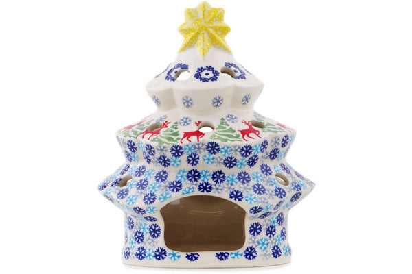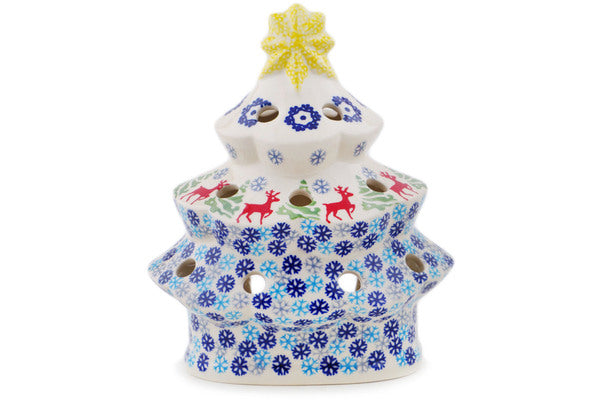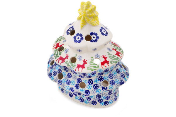 This Polish Pottery Christmas Tree Candle Holder is handmade and handpainted by the Manufaktura factory in Boleslawiec, Poland. Manufacturer item number H8427Q. It is 7½" high and measures 6¼" by 4¾". The weight of this Christmas Tree Candle Holder is 1.7 lbs. It is part of the Ring Around The Reindeer Collection.
